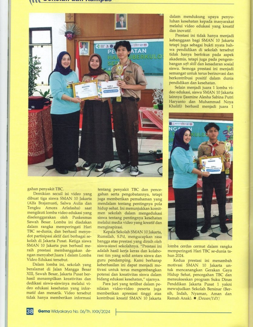 SMAN 10 Jakarta Juara 1 Lomba Video Edukasi dan Cerdas Cermat Berita Sekolah 📅 20 Januari 2026 ✍️ Admin Website Sekolah 👁️ 16 views SMAN 10 Jakarta Juara 1 Lomba Video Edukasi dan Cerdas CermatReferensi Majalah Gema Edisi No.06/Th. XXIX/2024
