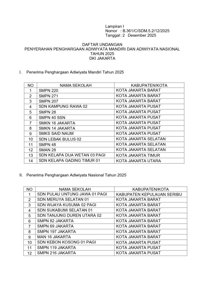 Alhamdulillah, SMAN 10 Jakarta telah berhasil meraih predikat Sekolah Adiwiyata Tingkat Nasional Tahun 2025. Pencapaian ini merupakan hasil kerja sama, dukungan, dan komitmen seluruh warga sekolah.
